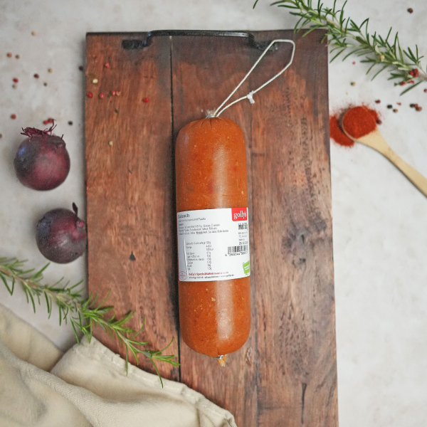 Wenn du echtes, herzhaftes Gulasch liebst, dann wirst du unser hausgemachtes Schweinegulasch im Sterildarm lieben.