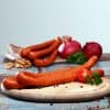 Zutaten: Schweinefleisch (94%), Emmentaler Käse (5 %), Speisesalz, Gewürze, Traubenzucker, Konservierungsmittel: Natriumnitrit, Naturdarm (Schaf), Buchenholzrauch