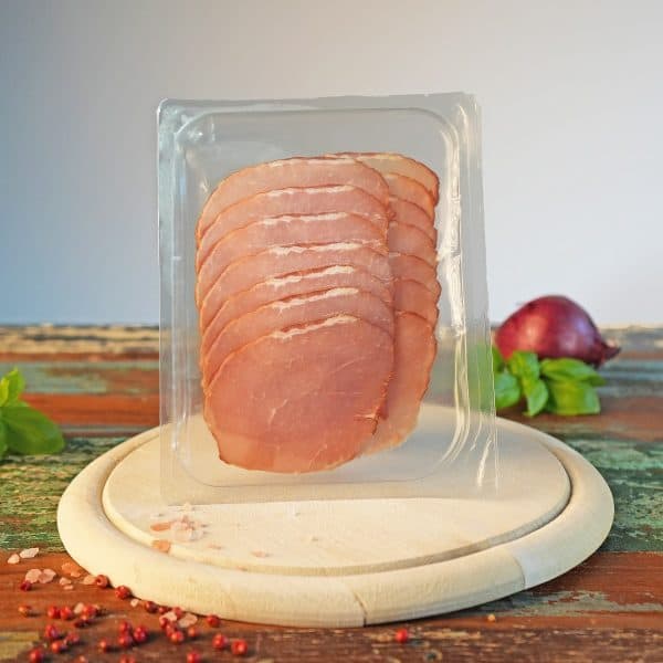 Saftig, zart, mid gesalzen, schön dünn geschnitten. Köstlich!