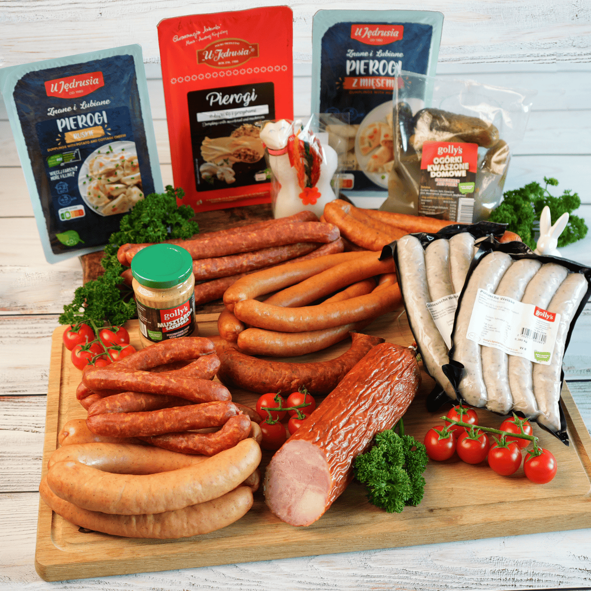 Jedes Element dieses Pakets wurde mit Bedacht gewählt, um die reiche Tradition und den feierlichen Charakter der Osterzeit widerzuspiegeln. Von saftigen Würstchen über herzhafte Pierogi bis hin zu den delikaten süßen Noten des Zucker-Osterlamms bietet das Osterpaket L eine breite Palette an Geschmäckern, die jeden Gaumen erfreuen.