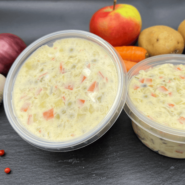 Bestell jetzt den Schlesischen Gemüsesalat von Golly’s und erlebe, wie dieser traditionelle Salat mit jedem Bissen ein Stück schlesische Heimat auf deinen Teller bringt. Ein Muss für jeden, der Wert auf Qualität, Frische und herzhaften Genuss legt!