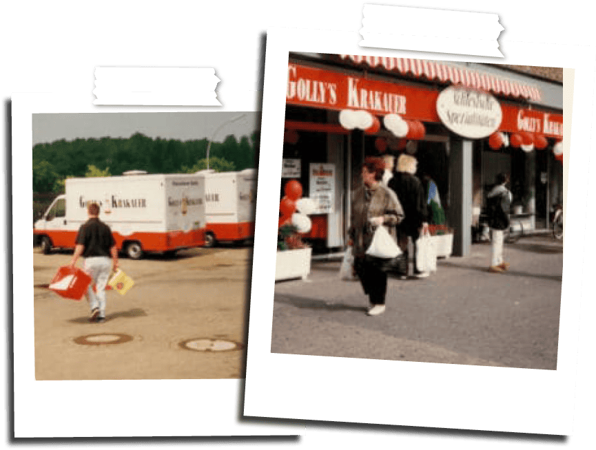 Nicht nur unser Produktionsstandort hat sich vergrößert, auch die Anzahl unserer Verkaufsfahrzeuge ist gestiegen: Waren es 1990 noch 3 Gollymobile, lieferten 2000 bereits 25 Fahrzeuge unsere Waren aus. Eine enorme Steigerung in zehn Jahren, die den Erfolg unserer Fleisch- und Wurstwaren widerspiegelt. Der zeigt sich auch in jährlichen DLG-Auszeichnungen, die unseren hohen Standard bestätigen.